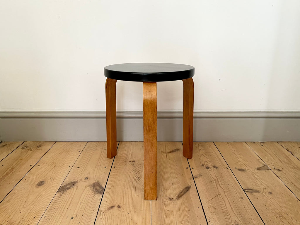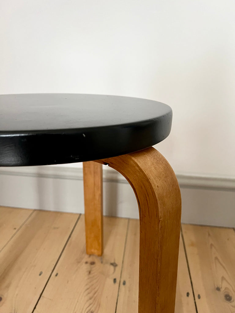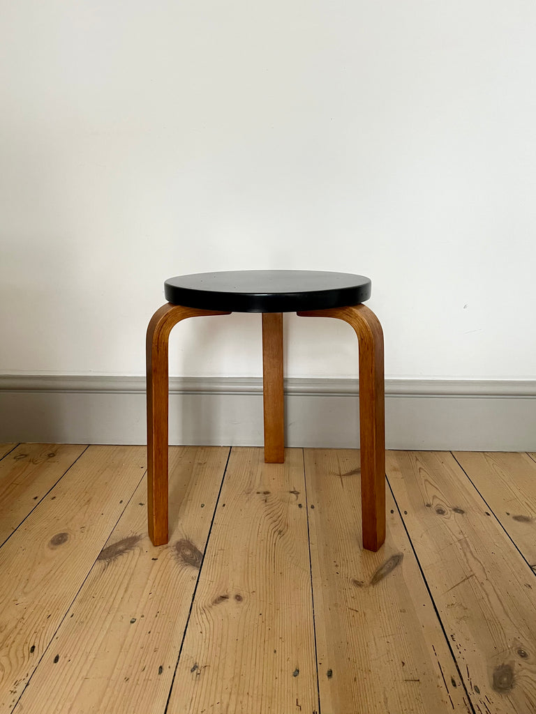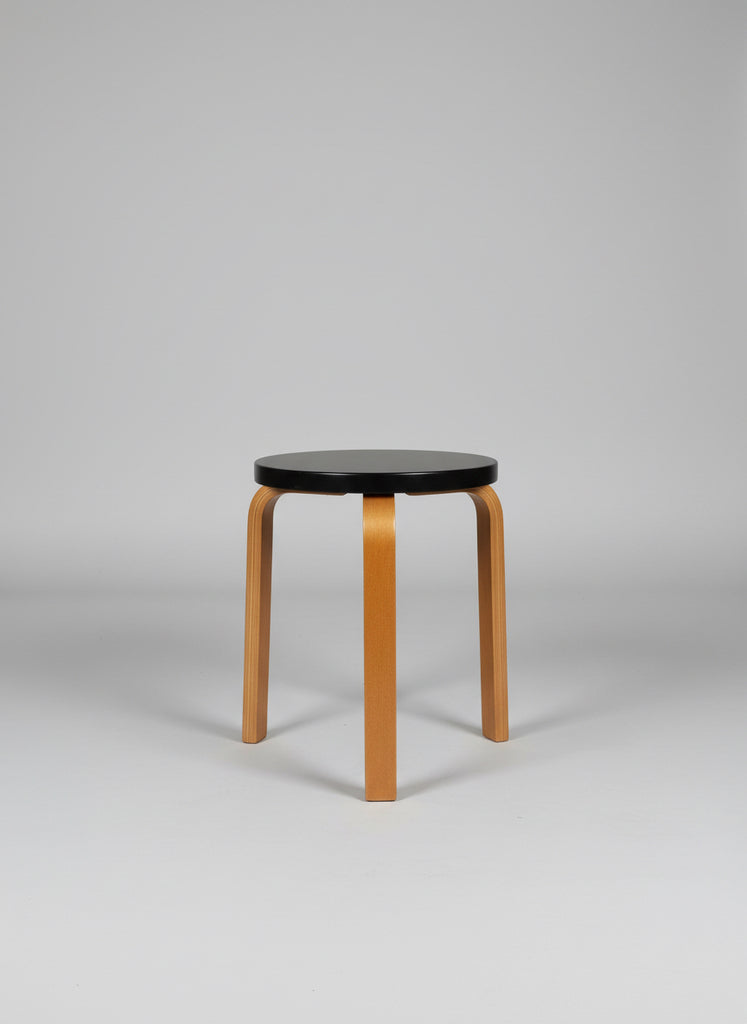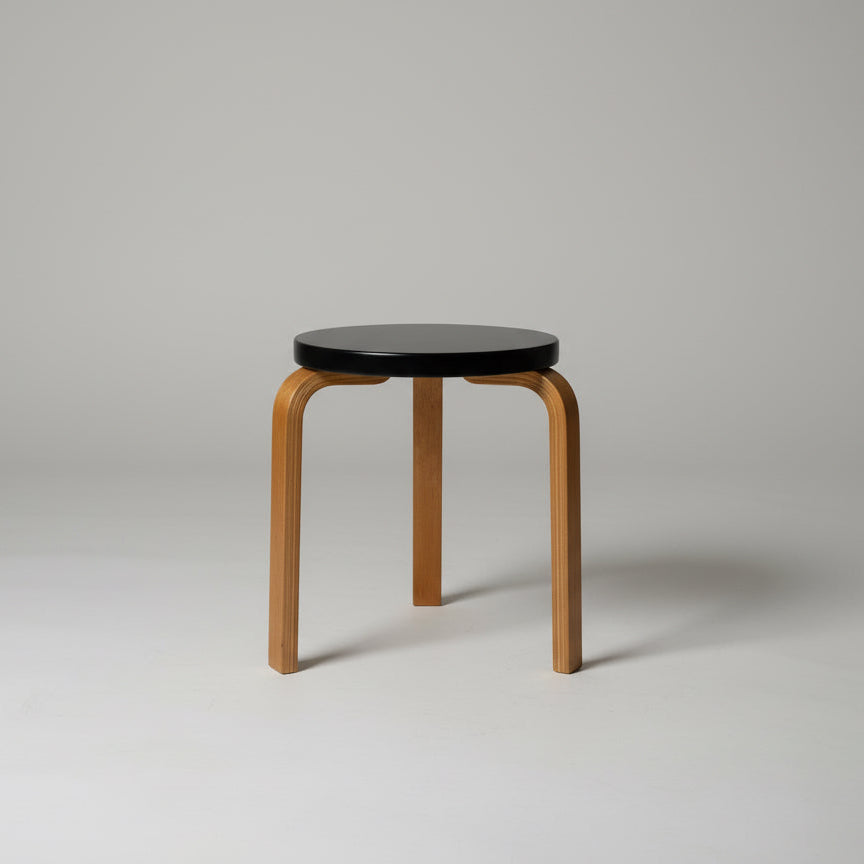 Solid bent birch legs, sawn to create the bend. Black (later painted) seat with edge trim and finger joins, only found on the early versions.