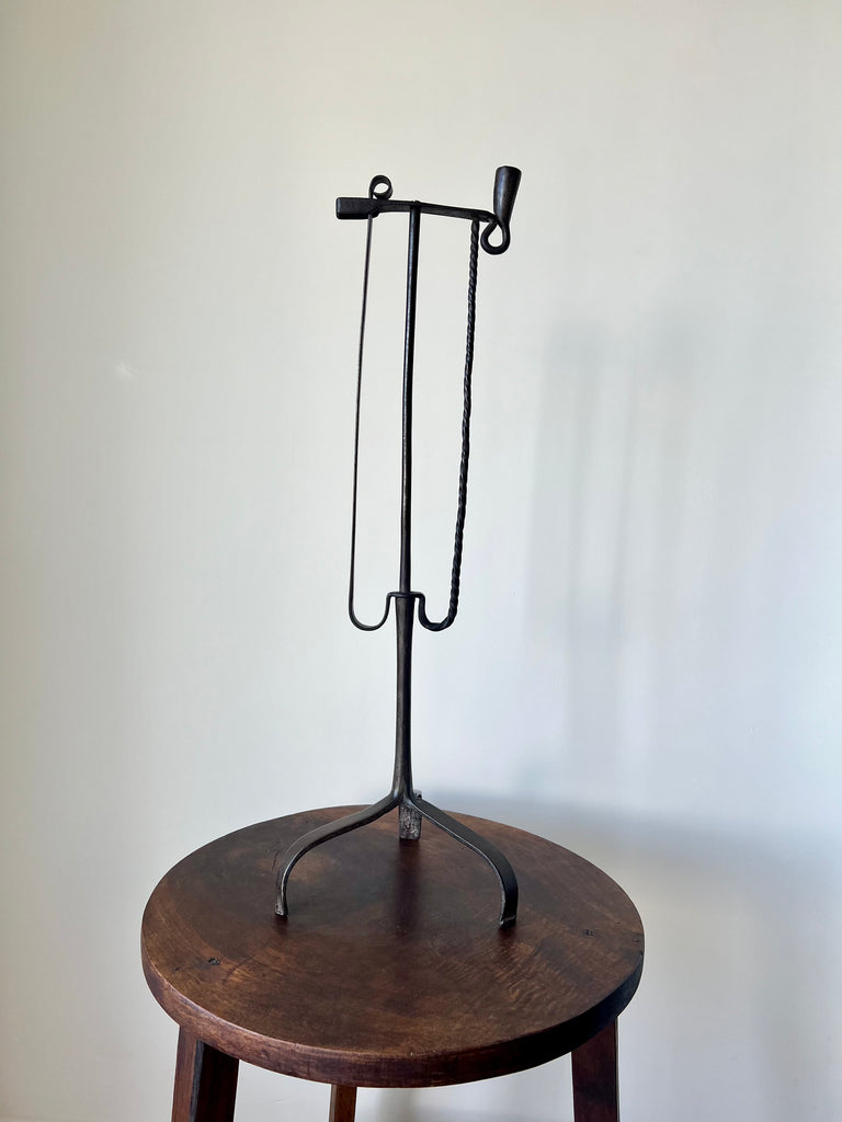 18th century candle and taper holder, hand forged in iron.