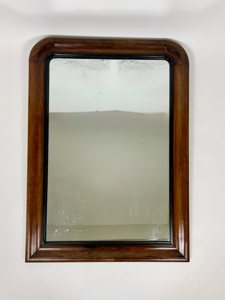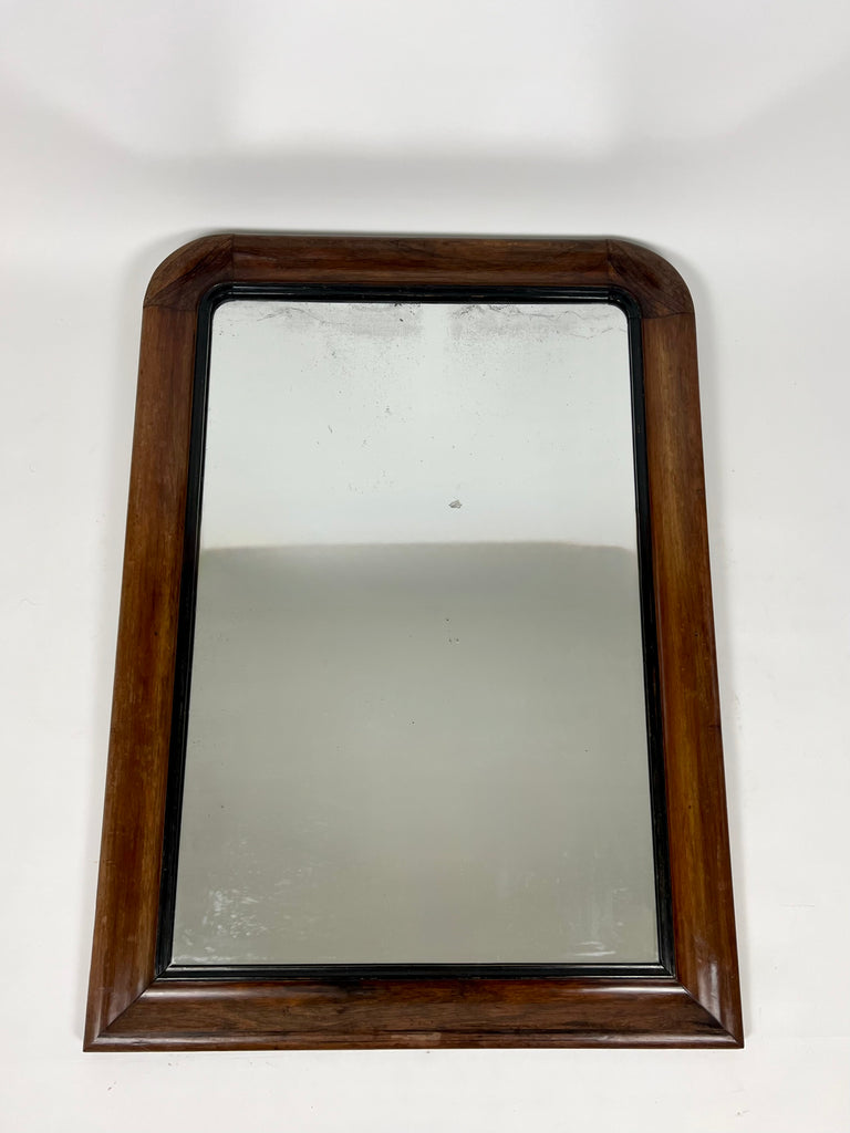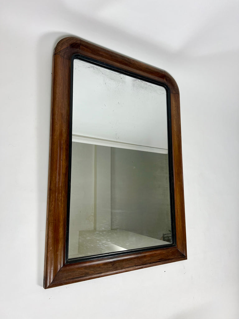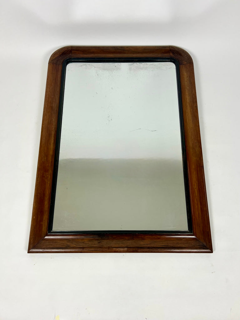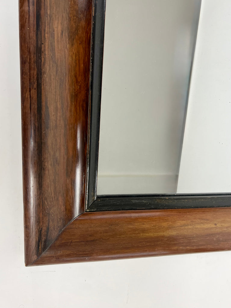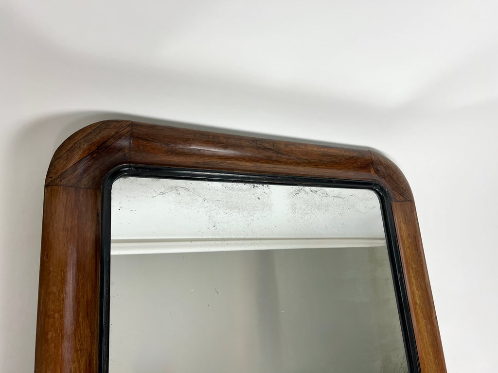 Large antique Art Deco wooden frame wall mirror with original foxed glass from France, early 20th century