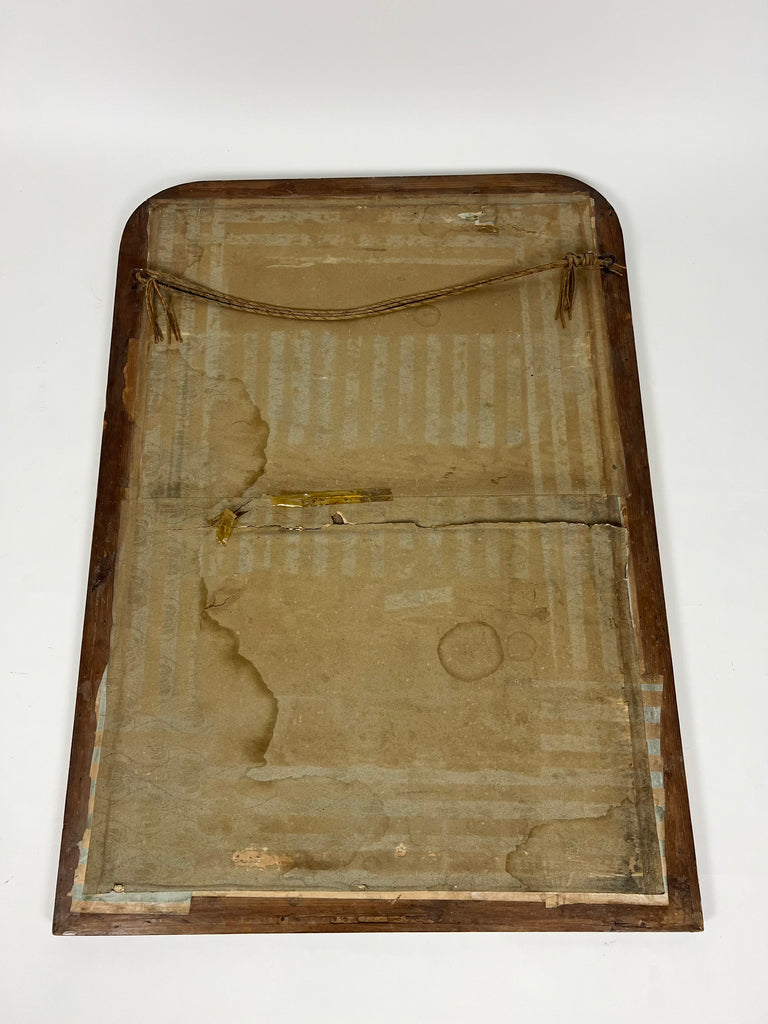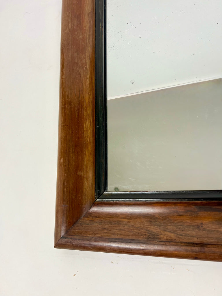 Large Antique Art Deco Wall Mirror: Wood Frame, Foxed Glass, France c.1920