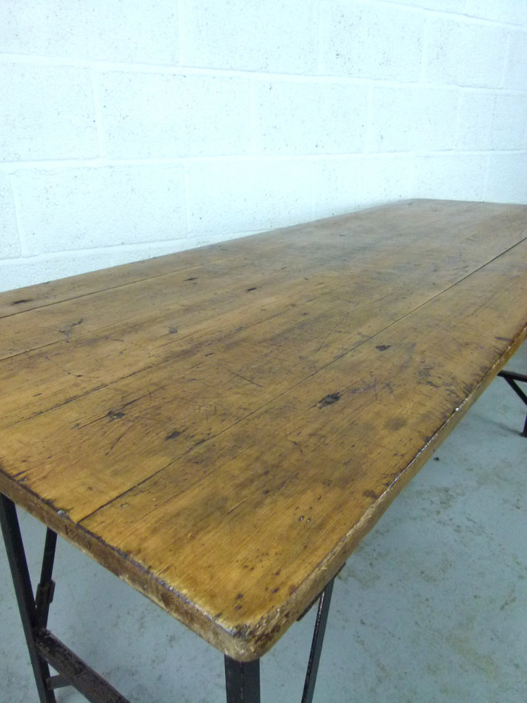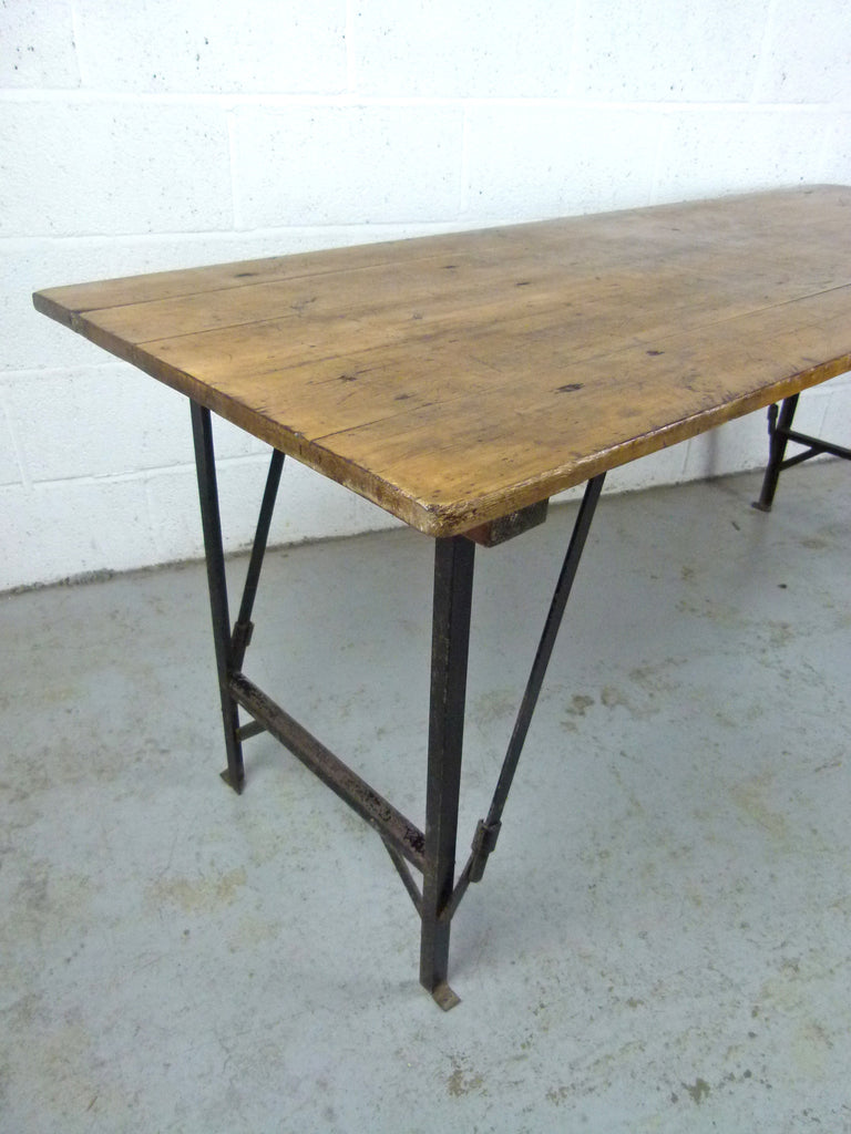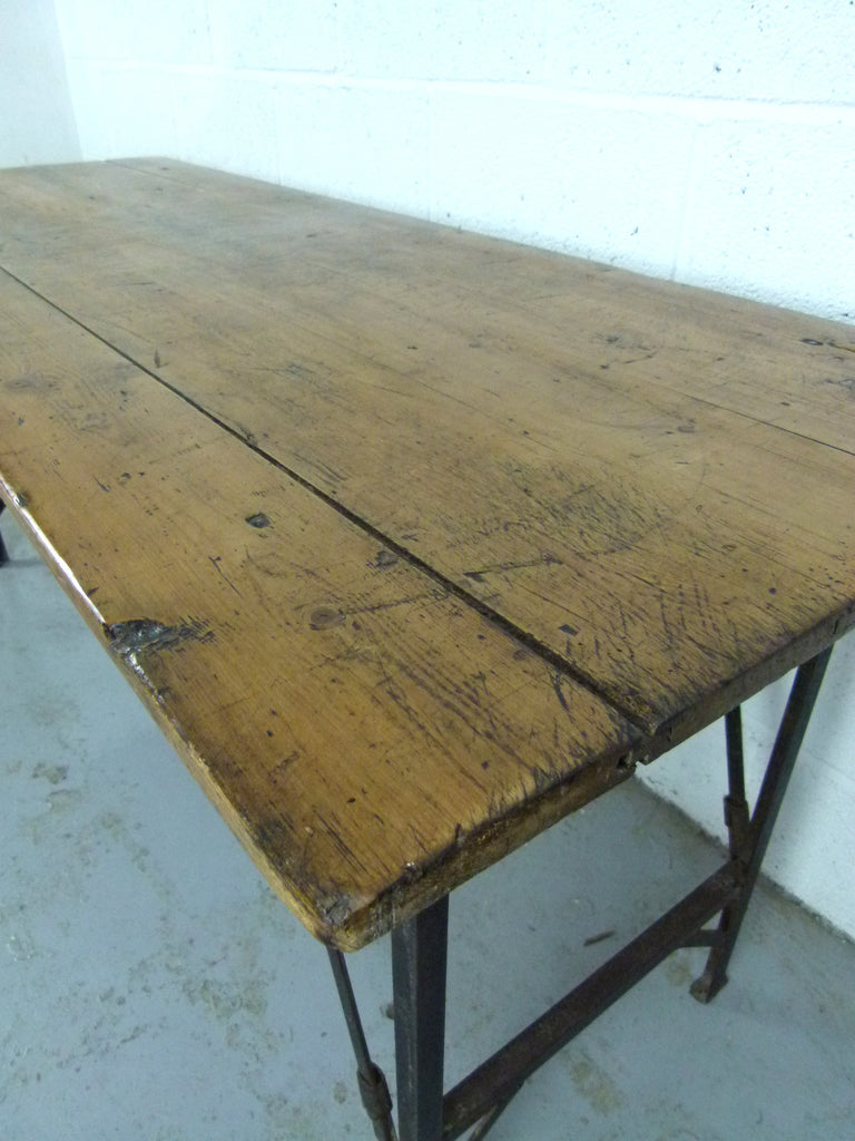 Sympathetically restored to maintain it's rugged industrial look - The top has been sanded and waxed. The legs cleaned, and waxed to enhance patina.
