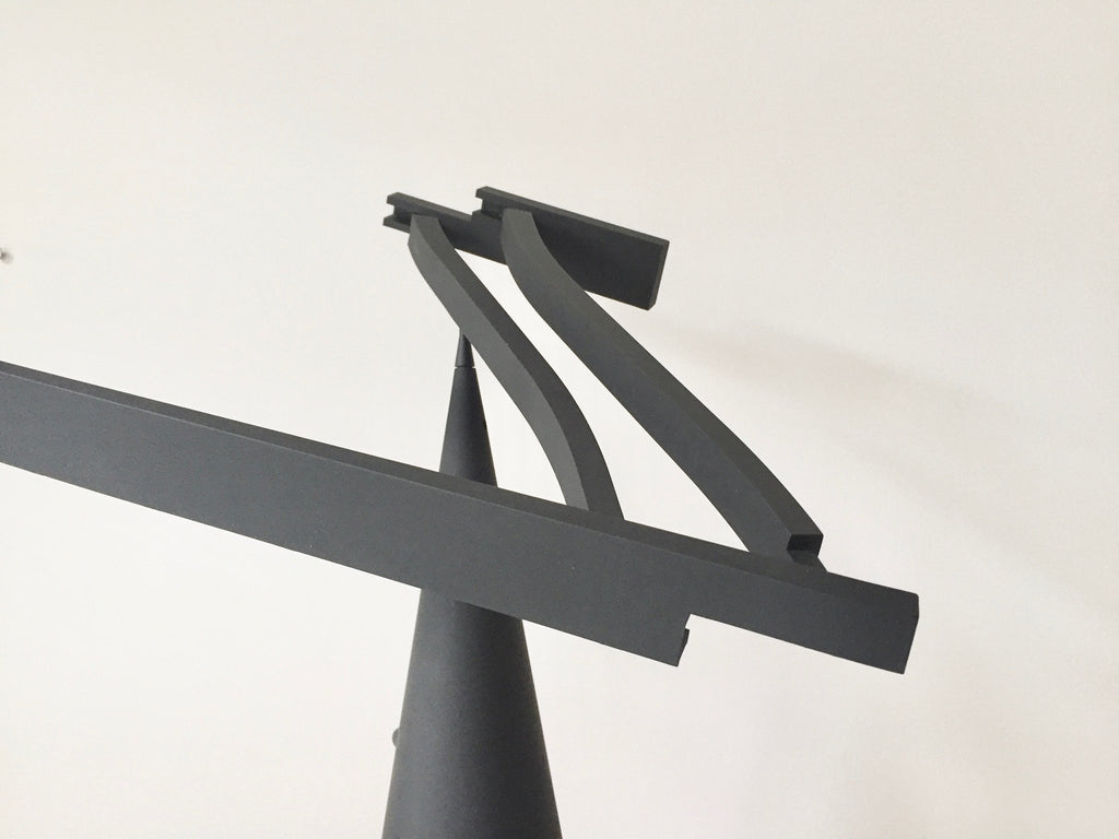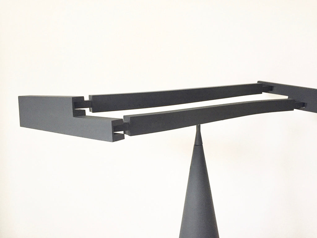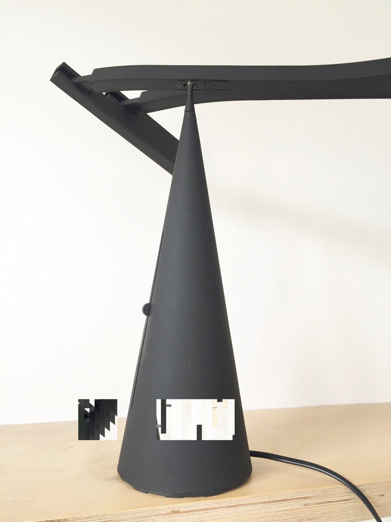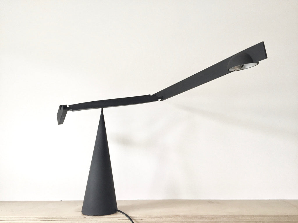 Beautifully sculptural lamp which smoothly adjusts to infinite positions. Articulated arms pivot on it's conical base. 3 light intensity settings. Matte black finish.